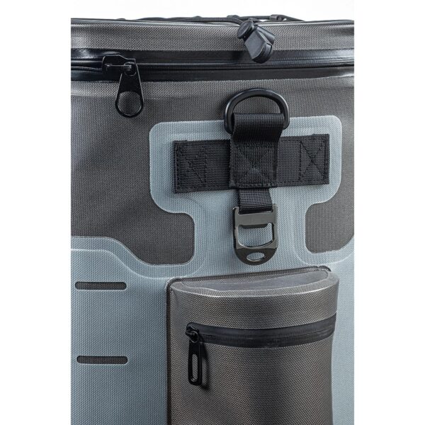 Adjustable single shoulder strap. Loop Webbing (sewn onto the front outer wall) for the ability to store more outdoor necessities. Front zipper pocket. Side zipper pouches. Exterior lid elastic webbing storage area. Outer Dimensions – 15.5″ W x 16.3″ H x 11.6″ D